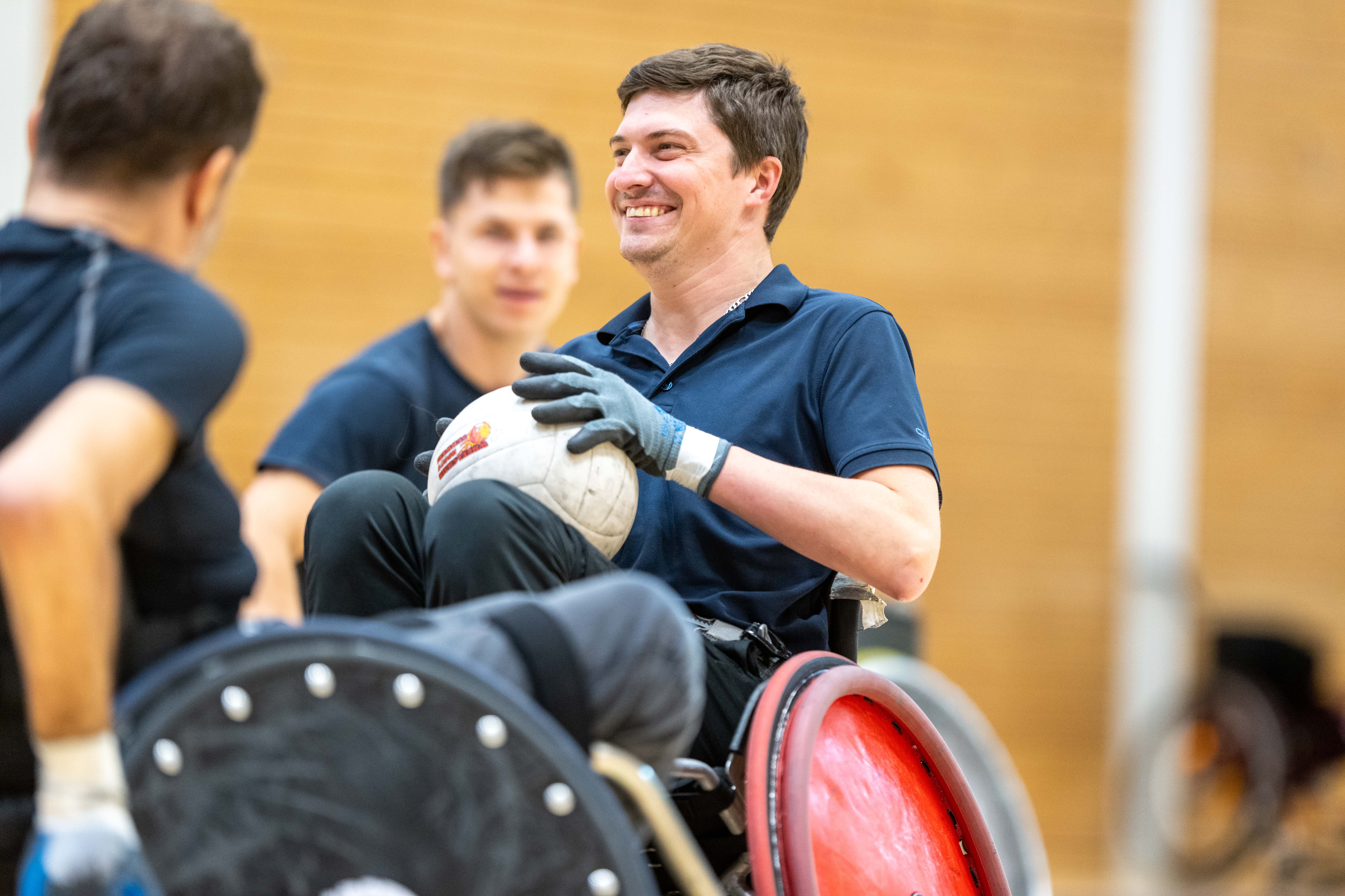 Körperliche Voraussetzung: beidseitige Hand- und Armfunktion, für die Steuerung des Rollstuhls und für die Ballkontrolle.