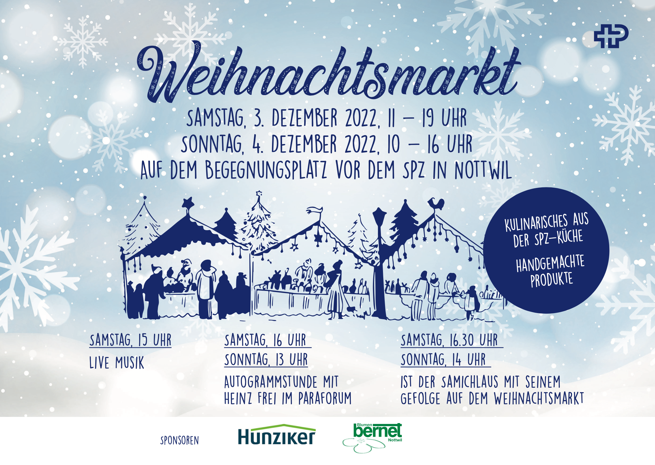 Geniessen Sie die weihnächtliche Stimmung vor dem SPZ, stöbern Sie an den Ständen mit handgefertigten Produkten und lassen Sie sich kulinarisch verwöhnen. Der Samichlaus schaut auch vorbei.