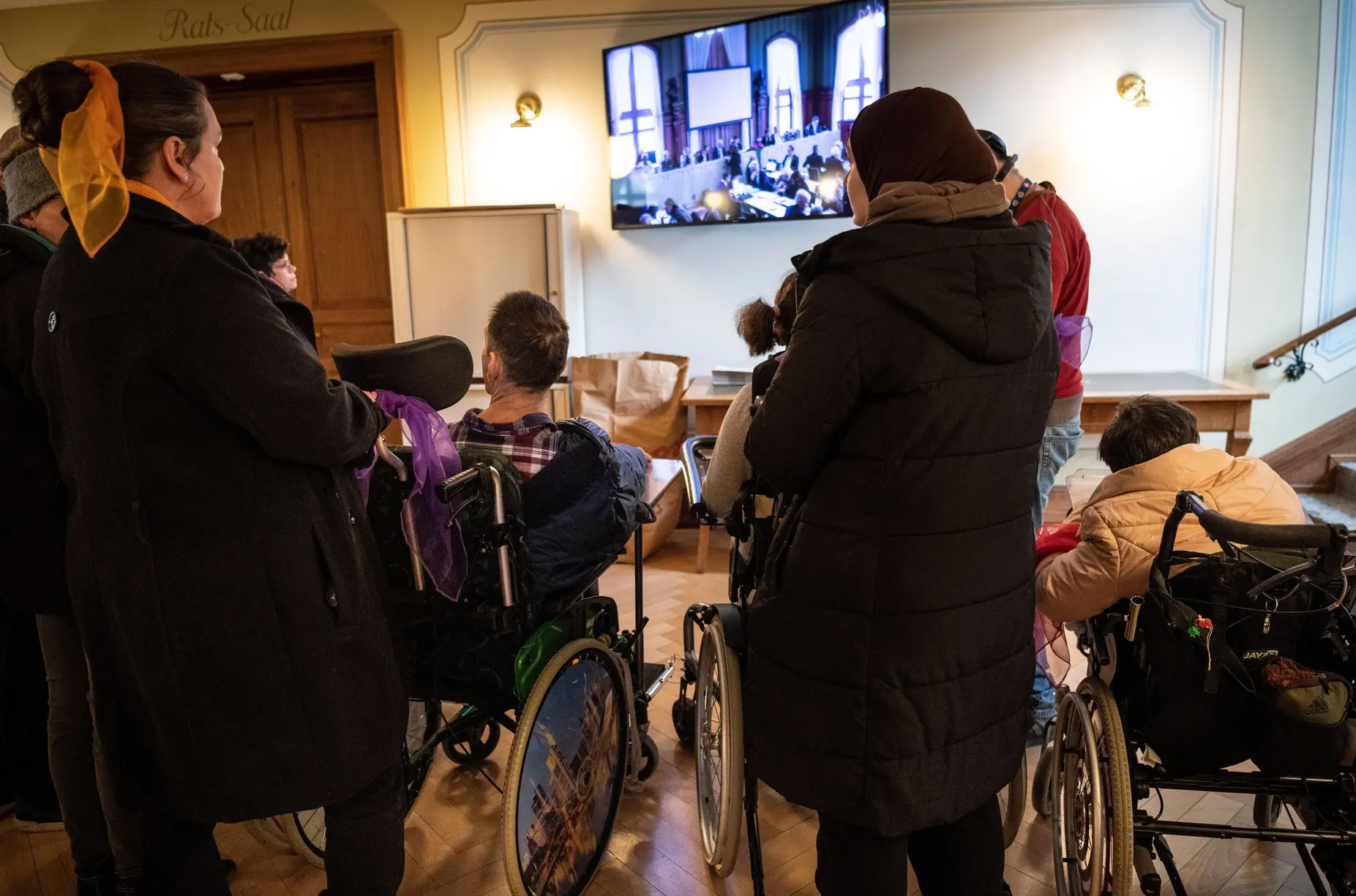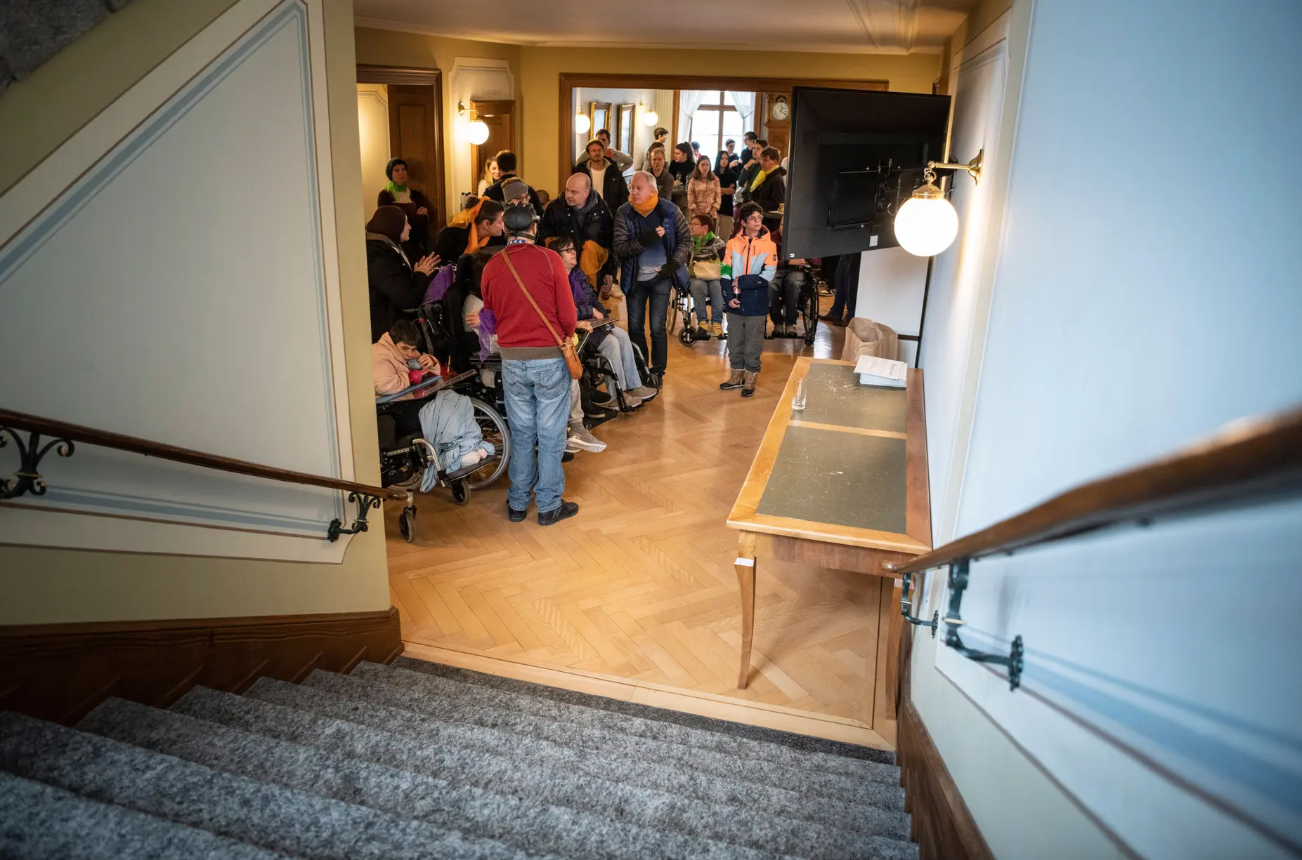 Wie werden die Fraktionen entscheiden? Darauf sind auch rund 40 Menschen mit Behinderung, ihre Betreuerinnen und Personen von und aus dem Umfeld von Pro Infirmis gespannt. Da die Zuschauertribüne nicht rollstuhlgängig und ohnehin beengt ist, müssen viele die Debatte im Foyer am Bildschirm verfolgen.