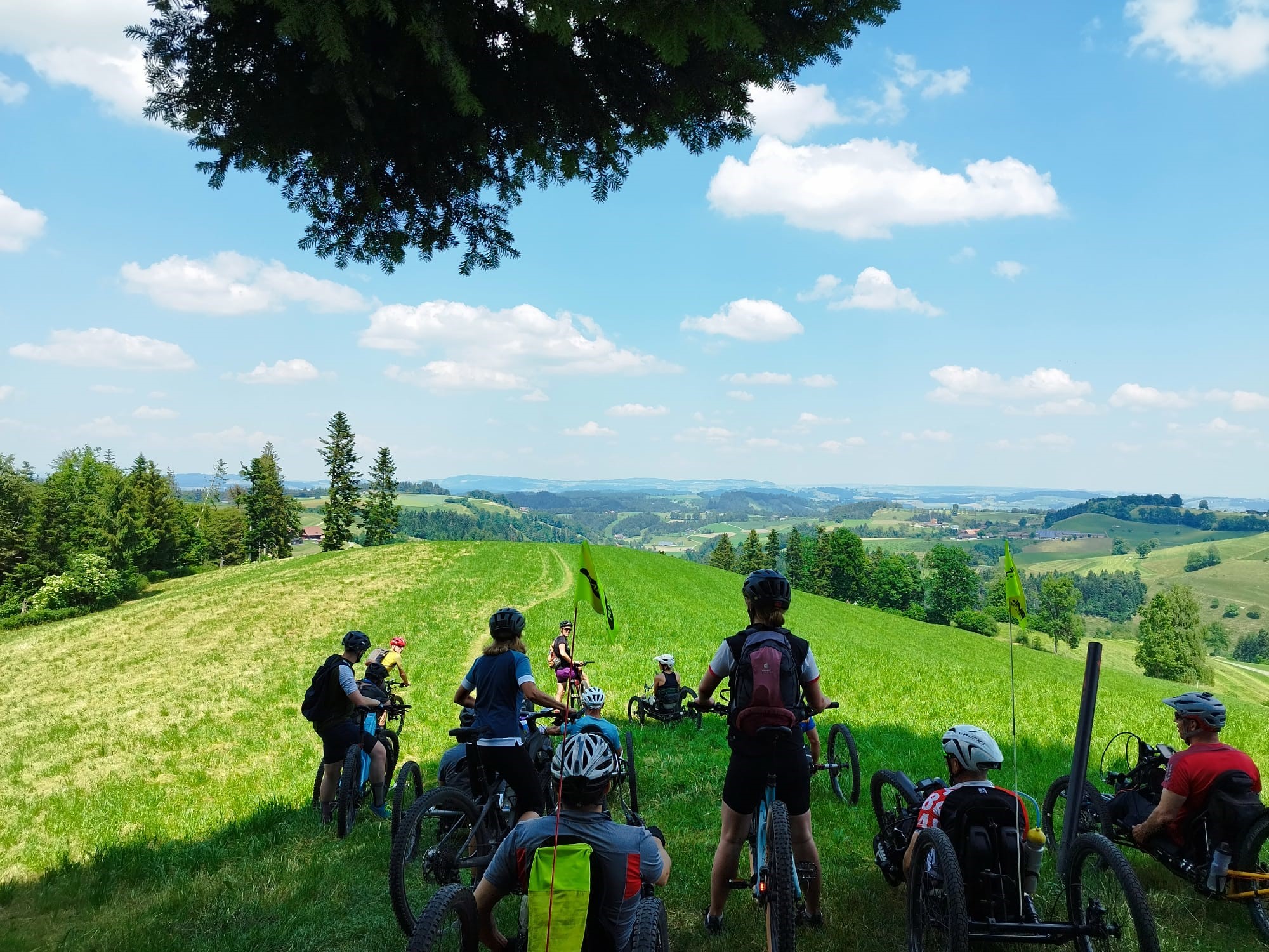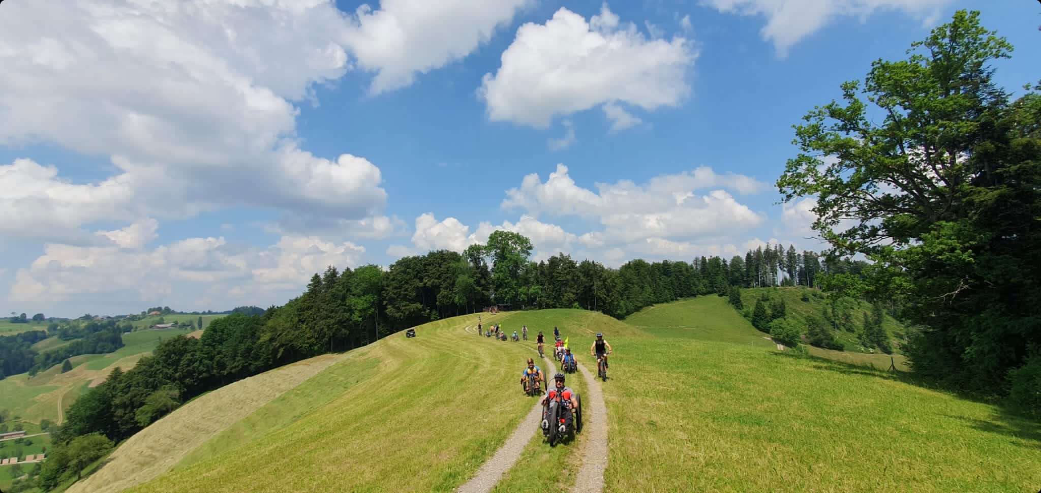 Ab Willisau starteten wir mit 12 Handbiker*innen und 10 Helferinnen und Helfer und waren 5 Stunden später alle wieder zurück am Ausgangspunkt, wo im Anschluss eine kleine Stärkung im Restaurant wartete. Super Wetter, herrliche Aussichten und tolle Stimmung waren den ganzen Tag mit uns unterwegs.