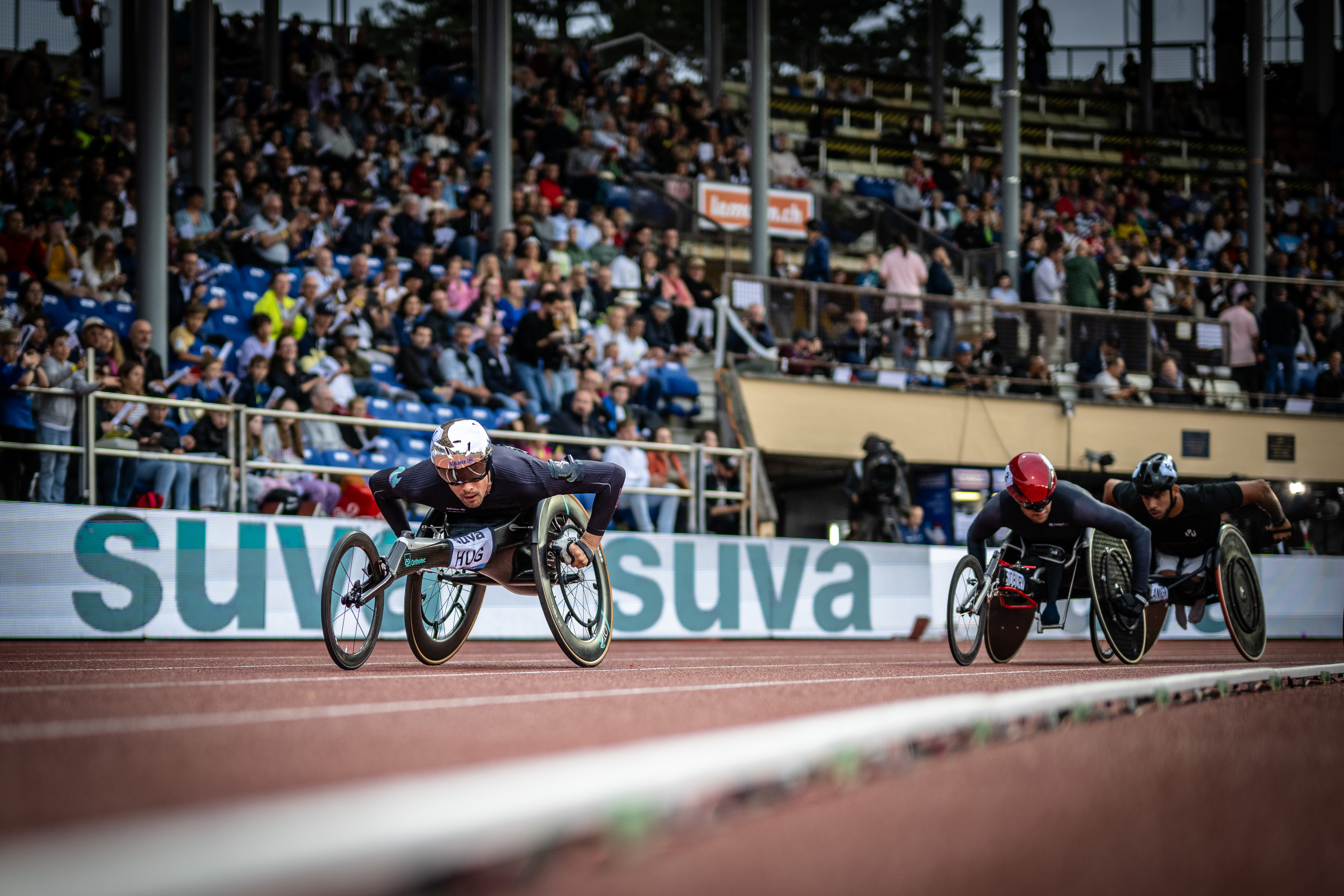 Mit einem packenden Schlussfurioso schlägt Marcel Hug beim Einlagerennen der Rollstuhl-Leichtathleten über 1500 m seine englischen Konkurrenten Danny Sidbury und Nathan Maguire. Der Nottwiler liefert damit am Diamond League Meeting einen weiteren Beweis für seine Topform knapp eine Woche vor der WM in Paris.