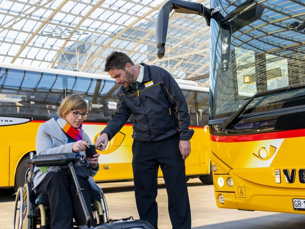 Leicht verspätet, aber dennoch: Die wichtigste und grösste Postautostation im Kanton Graubünden, diejenige am Bahnhof Chur mit dem riesigen halbrunden Glasdach, wird im Frühling behindertengerecht umgebaut. Die Erreichbarkeit ist bereits heute mit Liften gewährleistet. Die Haltestellen befinden sich aber bisher auf einem flachen Platz ohne Haltekanten.
