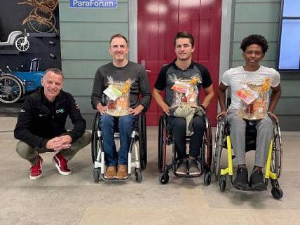 Stefan Dürger, Geschäftsführer der Orthotec AG Nottwil, ehrte zum Schluss der Versammlung alle Teilnehmenden des Orthotec Swiss Wheelchair Cup 2022. Neben den Preisgeldern für die ersten sechs Plätze wurden die drei Erstplatzierten mit einem Präsent des Spezialitätengeschäft Essenz GmbH Nottwil überrascht.