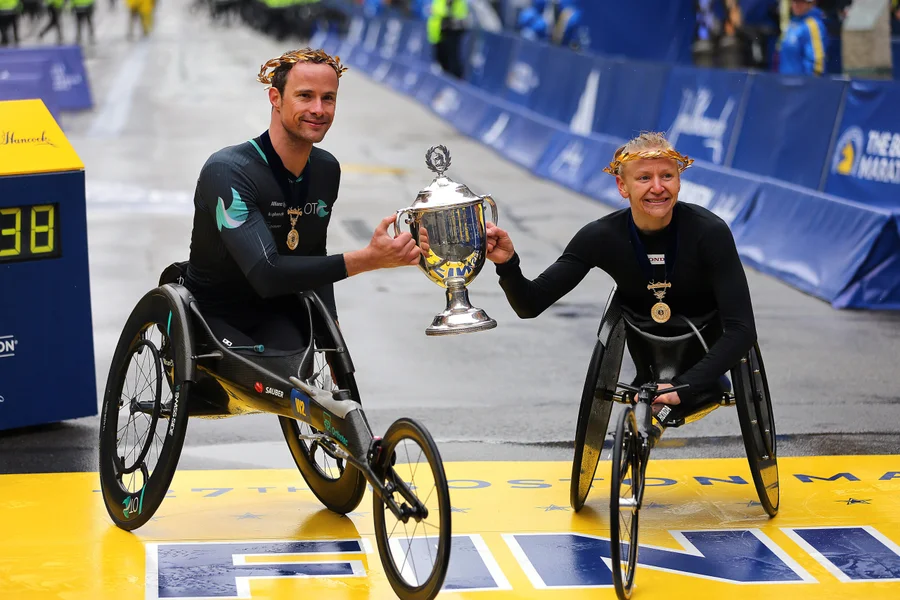 Marcel Hug stellte am Boston Marathon mit 1:17:06 einen neuen Streckenrekord auf und gewann mit einem Vorsprung von über 10 Minuten auf den zweitplatzierten Daniel Romanchuk. Bereits zum sechsten Mal entschied Marcel Hug den Marathon in Boston für sich. Schon am Samstag gewann Marcel Hug das 5-Kilometer-Rennen in einer Zeit von 9:52 und damit ebenfalls mit Streckenrekord.