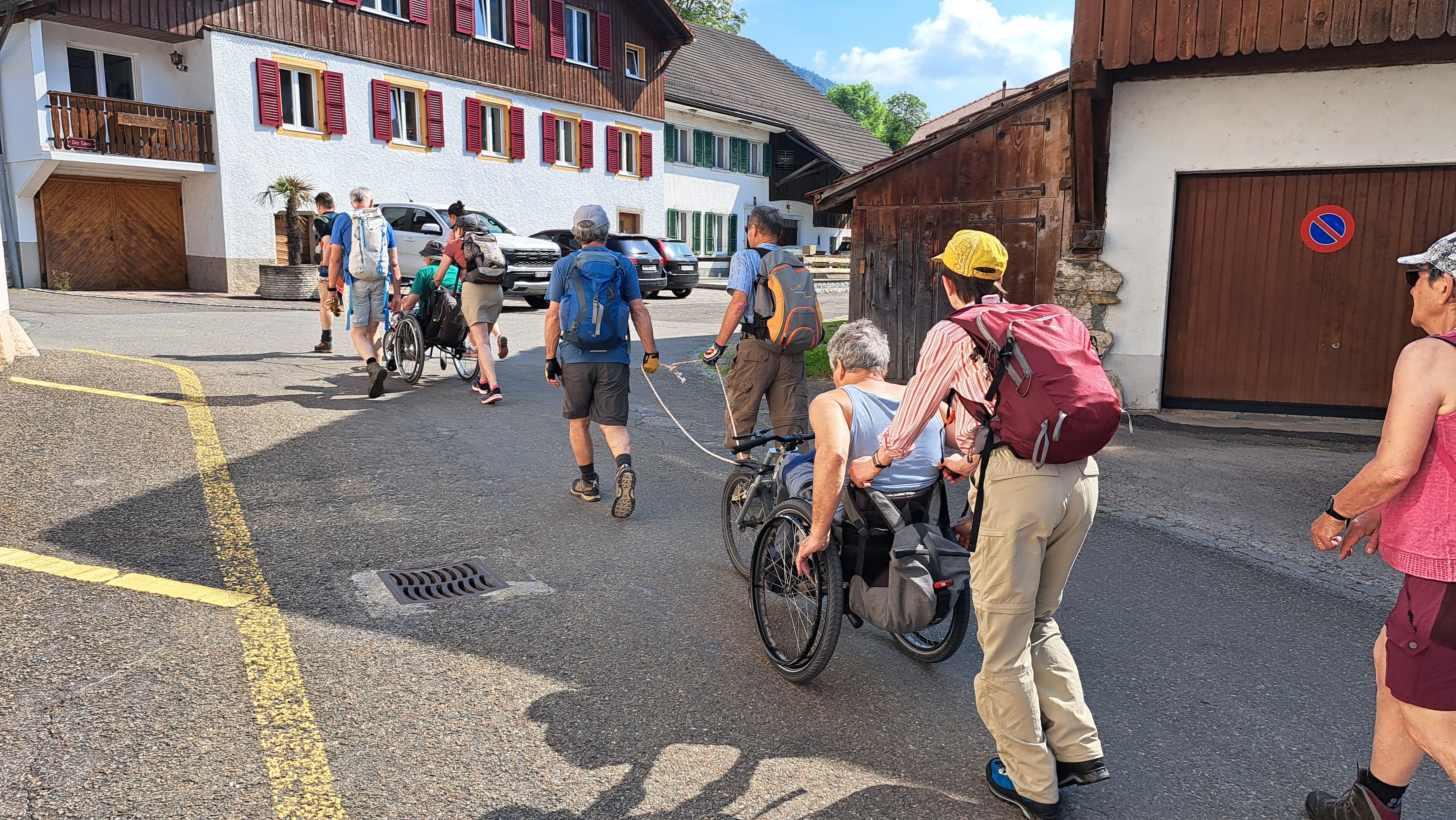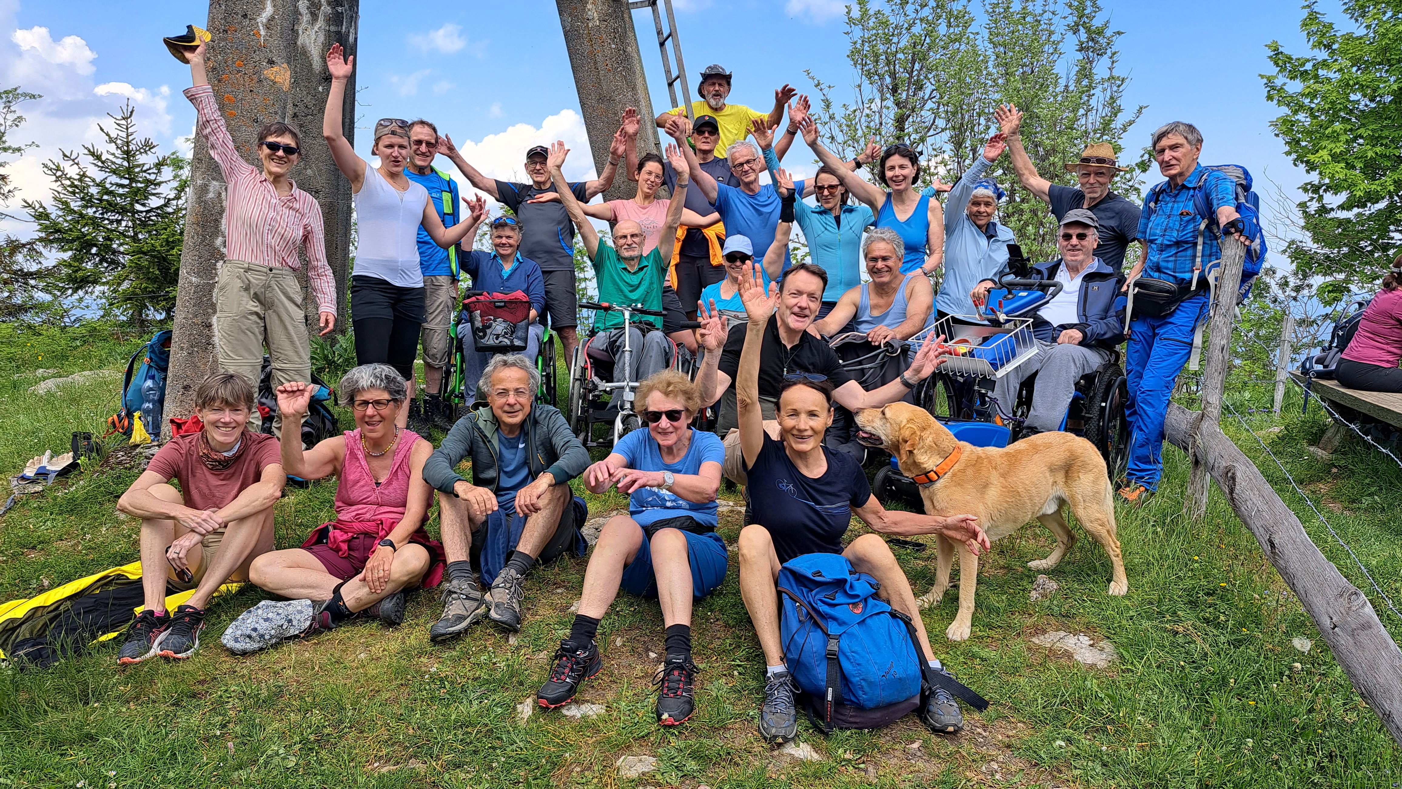 Début juin, cinq personnes en fauteuil roulant et de nombreux assistants et assistantes ont fait une belle randonnée.
