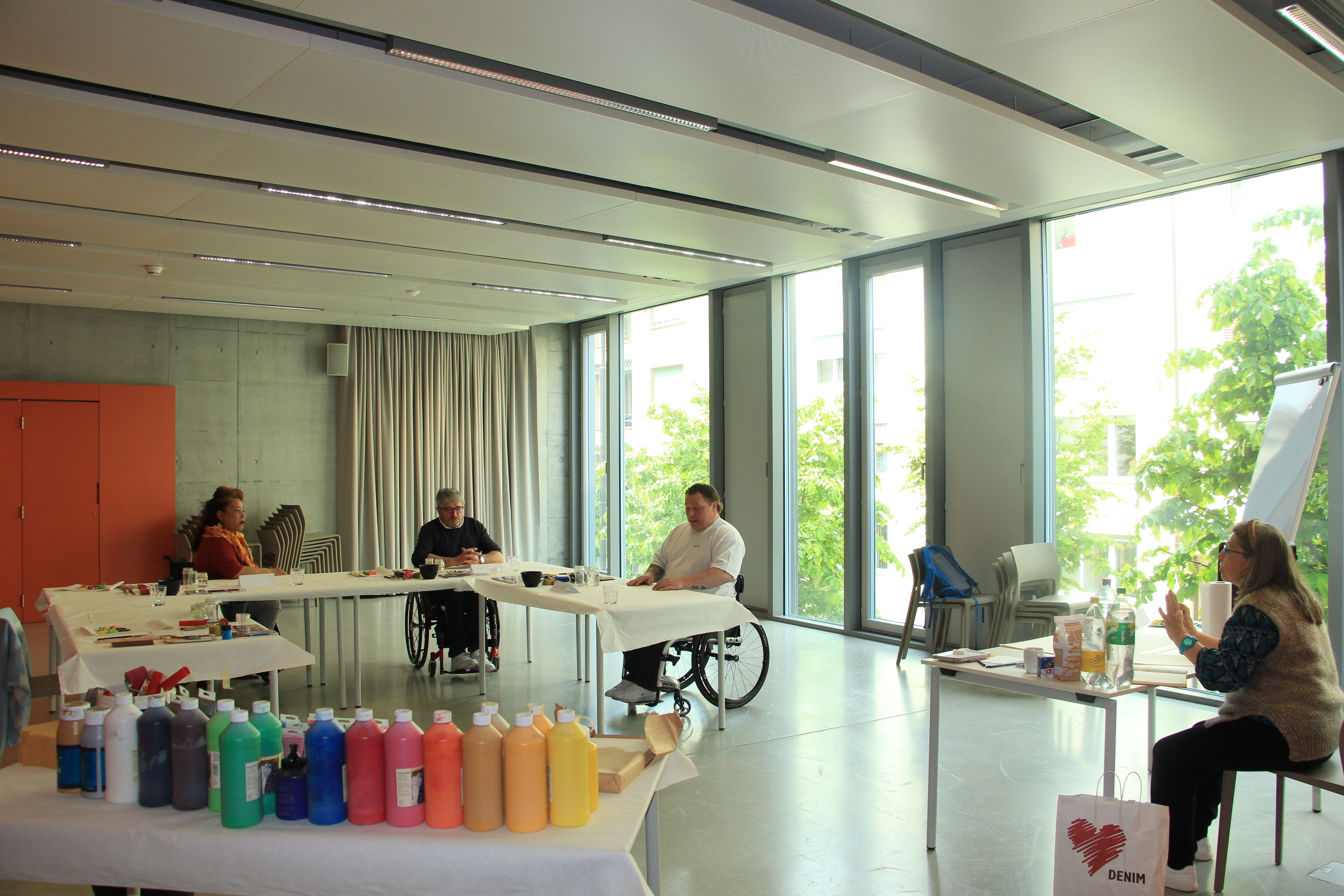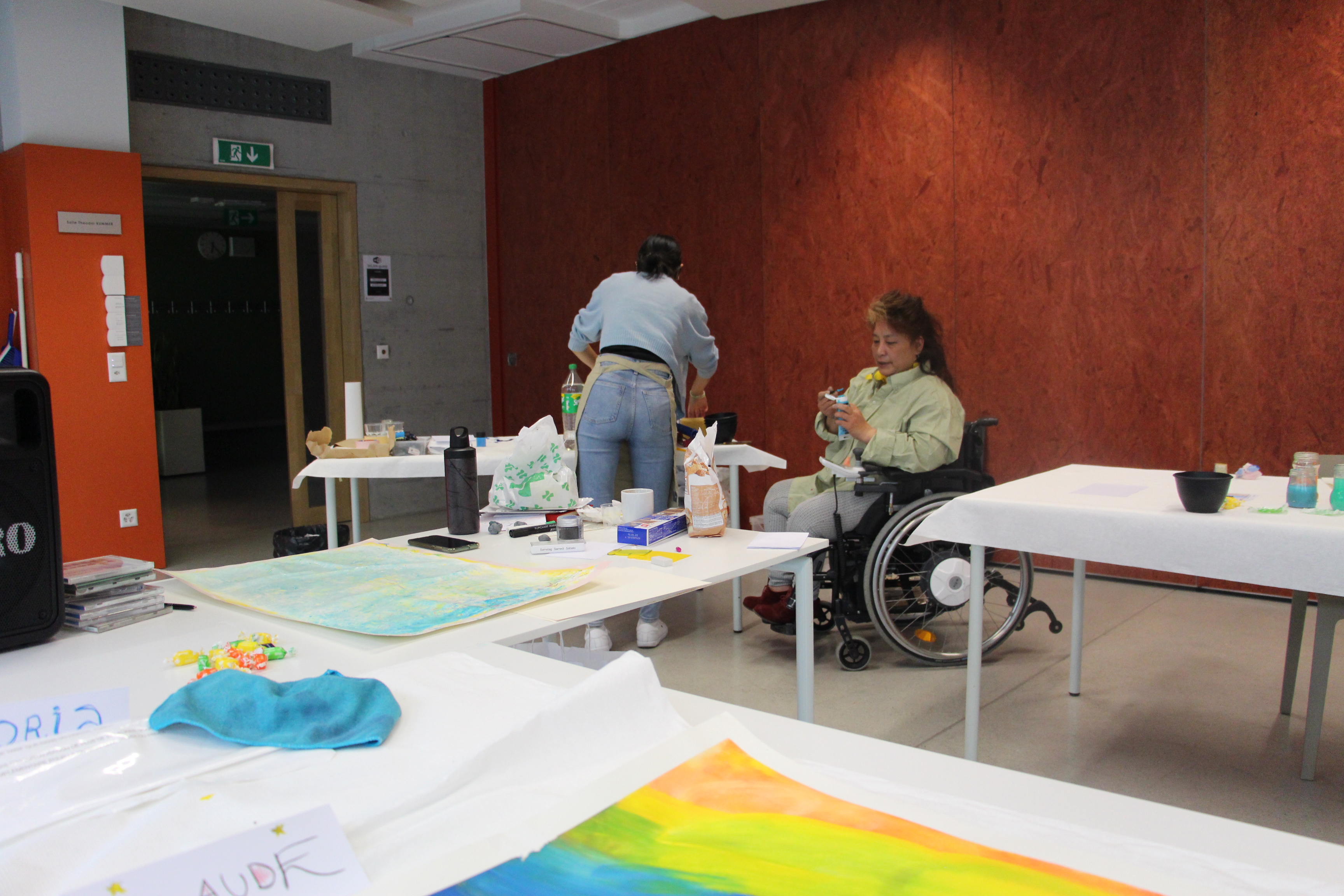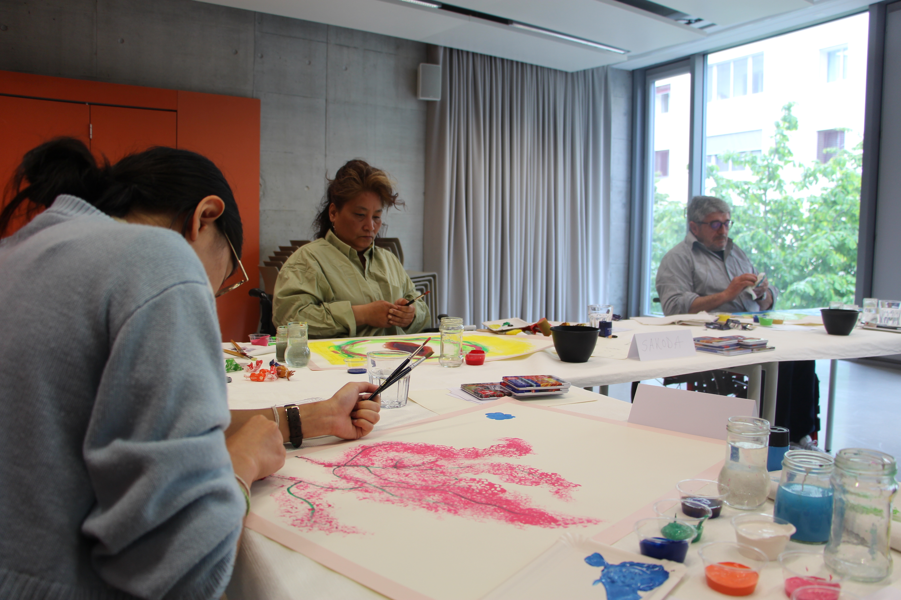 Le samedi 13 mai 2023, l'atelier de peinture a eu lieu pour la première fois en Suisse romande. Les participant·e·s se sont retrouvé·e·s à Clarens (VD), à la Maison de Quartier Jaman 8. De 13h à 18h, ils et elles ont pu donner libre cours à leur créativité. La technique utilisée par Gloria Avila, animatrice du cours, consiste à faire apparaître des formes, des figures et des couleurs en les interrogeant dans un état méditatif. Ce qui s'est finalement retrouvé sur le tableau, ce sont les sensations profondes, les émotions et les sentiments après le questionnement. Une approche intéressante, souvent utilisée dans les domaines de la psychologie. Le prochain cours aura lieu le 3 juin 2023, à nouveau à Clarens.