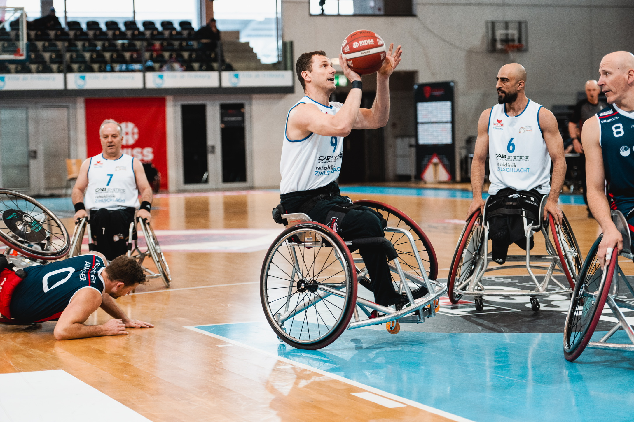 Malheureusement, il n'y avait pas encore beaucoup de spectateurs à 11 heures du matin dans le temple du basketball St-Léonard à Fribourg. C'est dommage car le match était vraiment intéressant. Dans la première mi-temps, les Rolling Rebels ont toujours mené avec parfois cinq points d'avance. Leur meilleur marqueur, Husein Vardo, a réussi de beaux paniers, avec un incroyable assurance, pendant cette phase. Du côté des Dragons, Nicolas Hausammann a tenu bon à mi-distance et a maintenu son équipe dans le match jusqu'au résultat de 25 à 25 à la mi-temps.