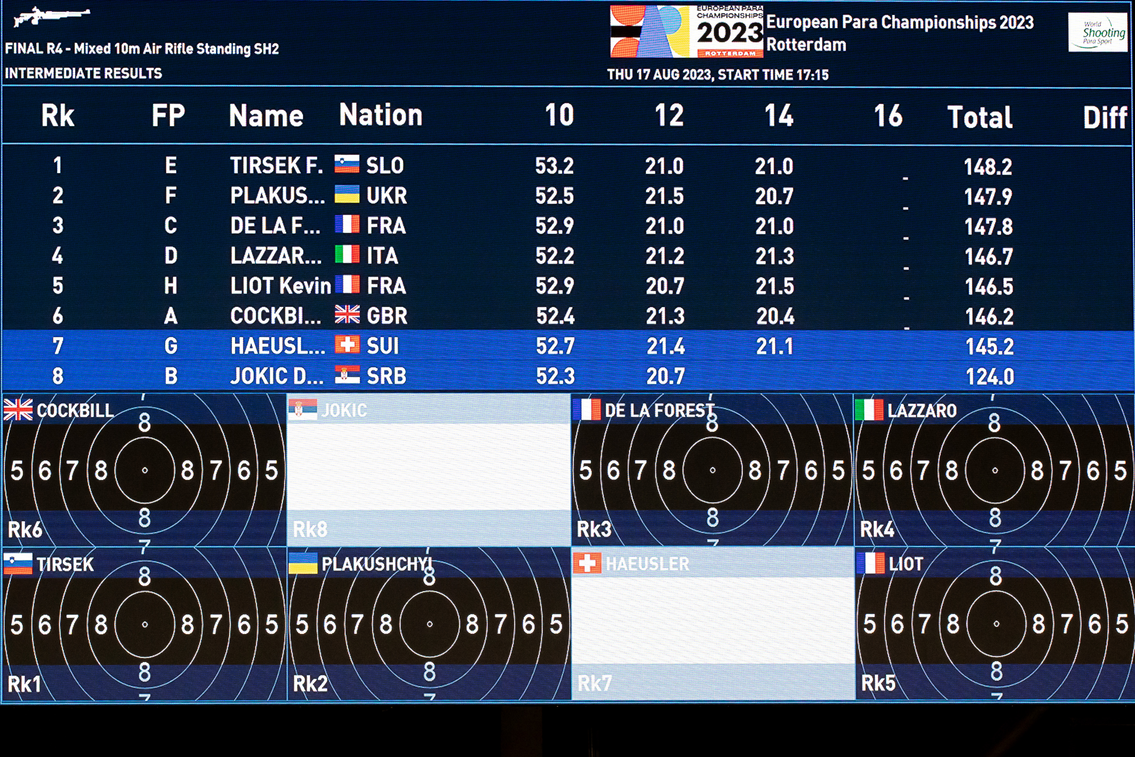 Nicole Häusler a bien commencé sa première compétition à Rotterdam. Seule athlète à s'imposer face à ses concurrents masculins, elle s'est classée 6e du tour préliminaire avec 630,9 points, se qualifiant ainsi pour la finale. Son objectif pour les European Para Championships était donc déjà atteint pour elle et son coach.