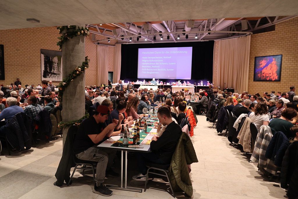 Le club de yodleurs de Nottwil et l'ASP avaient réuni les meilleures conditions pour que l'ambiance soit chaleureuse, que les participant·e·s s'amusent et que de superbes prix soient remportés lors du loto des yodleurs, organisé pour la première fois en commun. Des prix attrayants tels que 2 nuits dans un magnifique hôtel du lac de Constance, divers bons, des paniers-cadeaux et des chariots remplis de victuailles ont comblés celles et ceux qui étaient venu·e·s se divertir et tenter leur chance à Nottwil les 28 et 29 décembre. Les deux soirées affichaient complet et l'offre de restauration de la cuisine du CSP a également été largement appréciée. Parfois, les places étaient déjà occupées une heure et demie avant le début du programme.