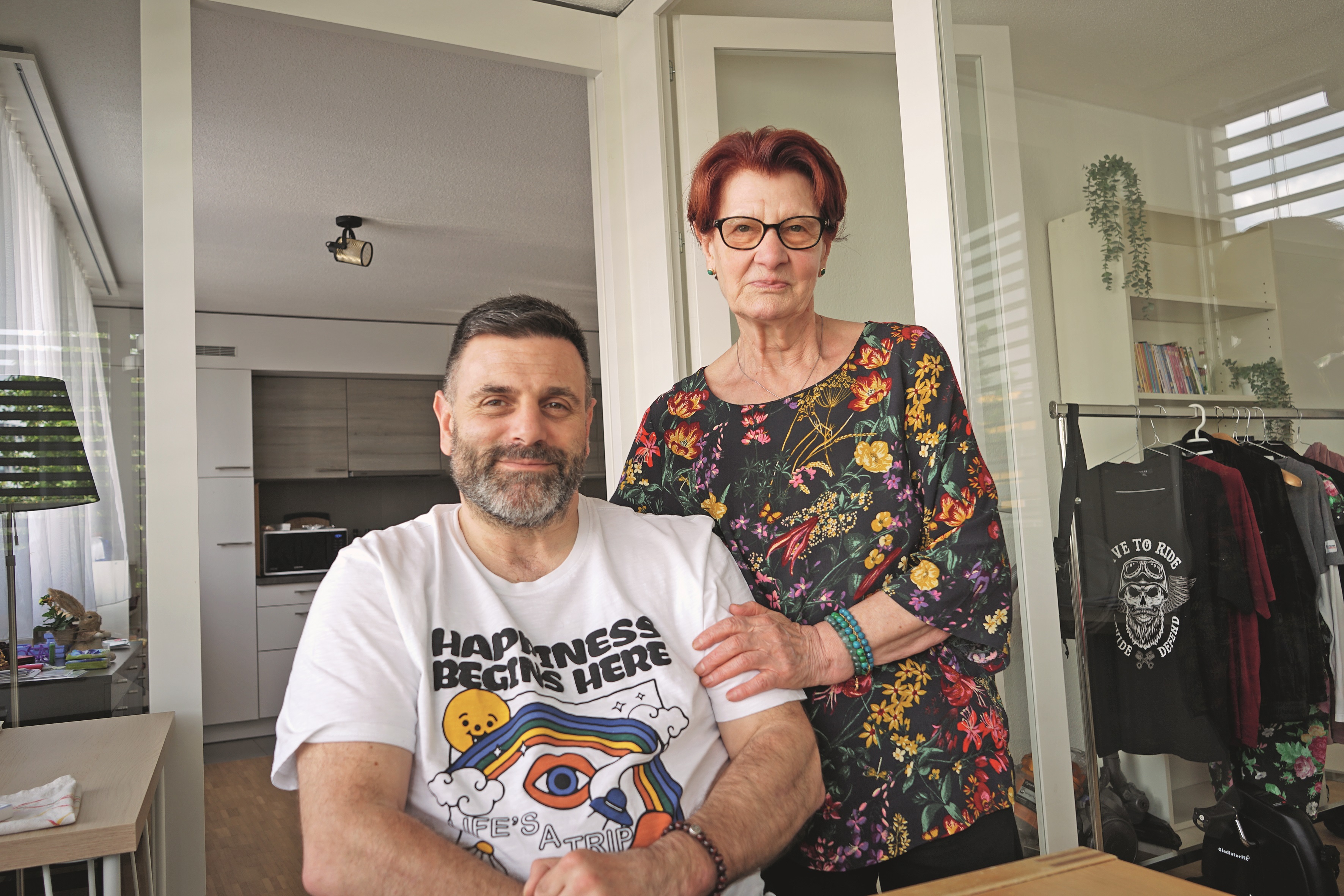 Par ailleurs, ne serait-ce que pour son entourage, il n’était pas question de se laisser aller. Il se sent responsable vis-à-vis de ses deux enfants désormais adultes, de sa compagne qui l’a toujours soutenu, des amis qui sont là pour lui – ses potes de foot, avec lesquels il partait chaque année quelques jours à l’étranger, ont même passé un week-end à Nottwil avec lui pendant sa rééducation au lieu d’aller visiter une quelconque ville d’Europe. Sa compagne, par son attitude positive malgré ce changement de vie pour les deux, lui permet d’aller de l’avant au quotidien et de faire des projets pour l’avenir. Et il a sa mère Concetta qui cuisine pour lui plusieurs fois par semaine et l’aide dans le ménage.