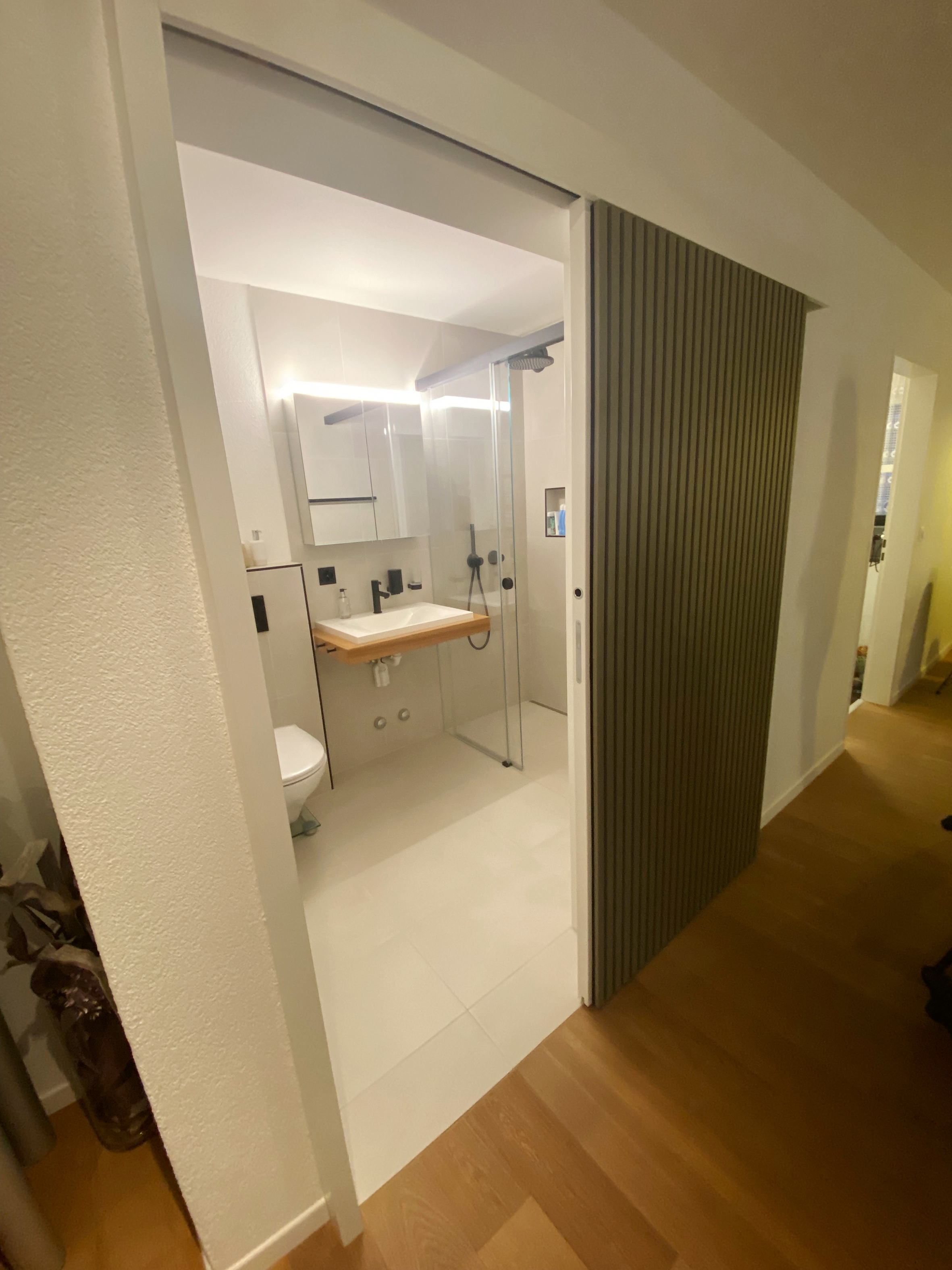 L’automatisation de la porte à l’entrée principale de l’immeuble de Birr est tout aussi importante. Cette partie de la transformation doit d’abord être discutée avec les autres copropriétaires et la gérance – Felix Schärer mène les discussions et obtient finalement le feu vert. Quelque temps plus tard, l’autre grand aménagement est réalisé dans l’appartement: un élargissement de la porte donnant sur le balcon et un accès sans seuil vers l’extérieur.