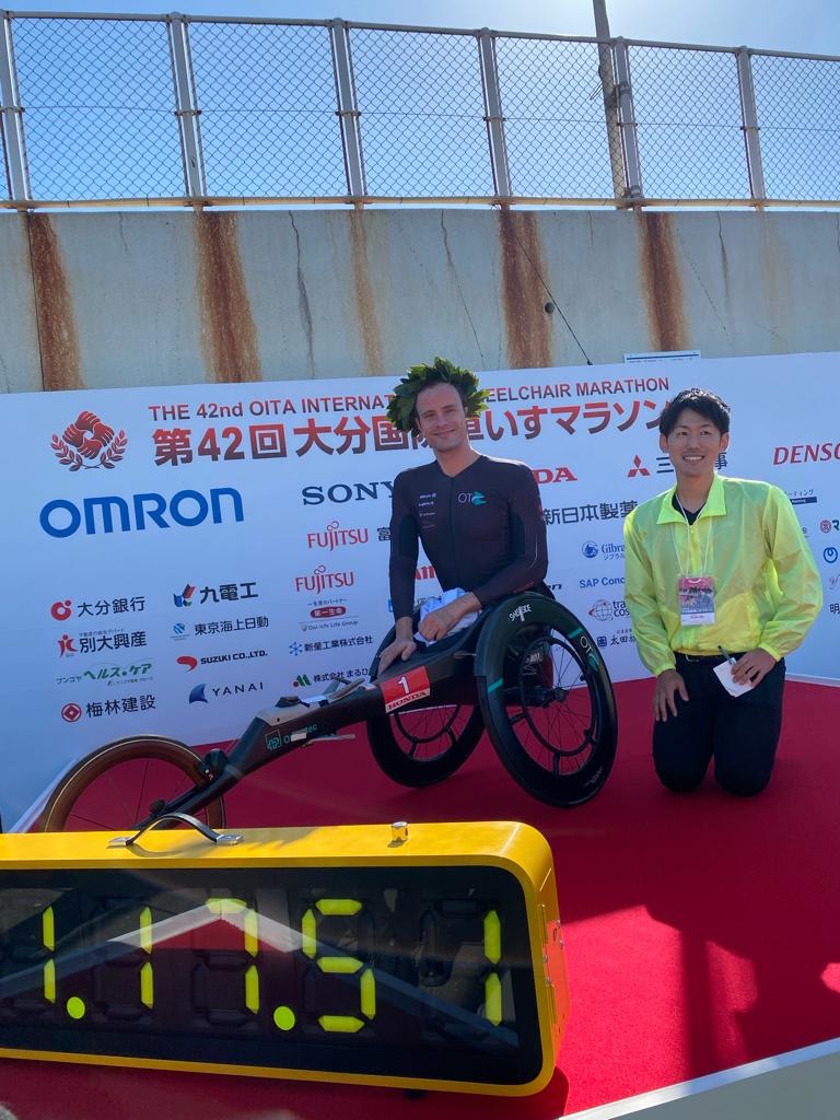 La série de victoires de Marcel Hug continue. Vainqueur du classement général de l'Abbott World Marathon Majors XV, dimanche dernier, il a aussi gagné la prestigieuse course d'Oita. Hug, qui s'était déjà détaché du peloton après trois kilomètres, a franchi la ligne d'arrivée après 1 heure 17 minutes et 51 secondes d'efforts. À quatre secondes près, il aurait pu battre son propre record du monde. Heinz Frei (Oberbipp), 65 ans, citoyen d'honneur de la ville d'Oita et plusieurs fois vainqueur de la compétition, termine le marathon à la 25e place.