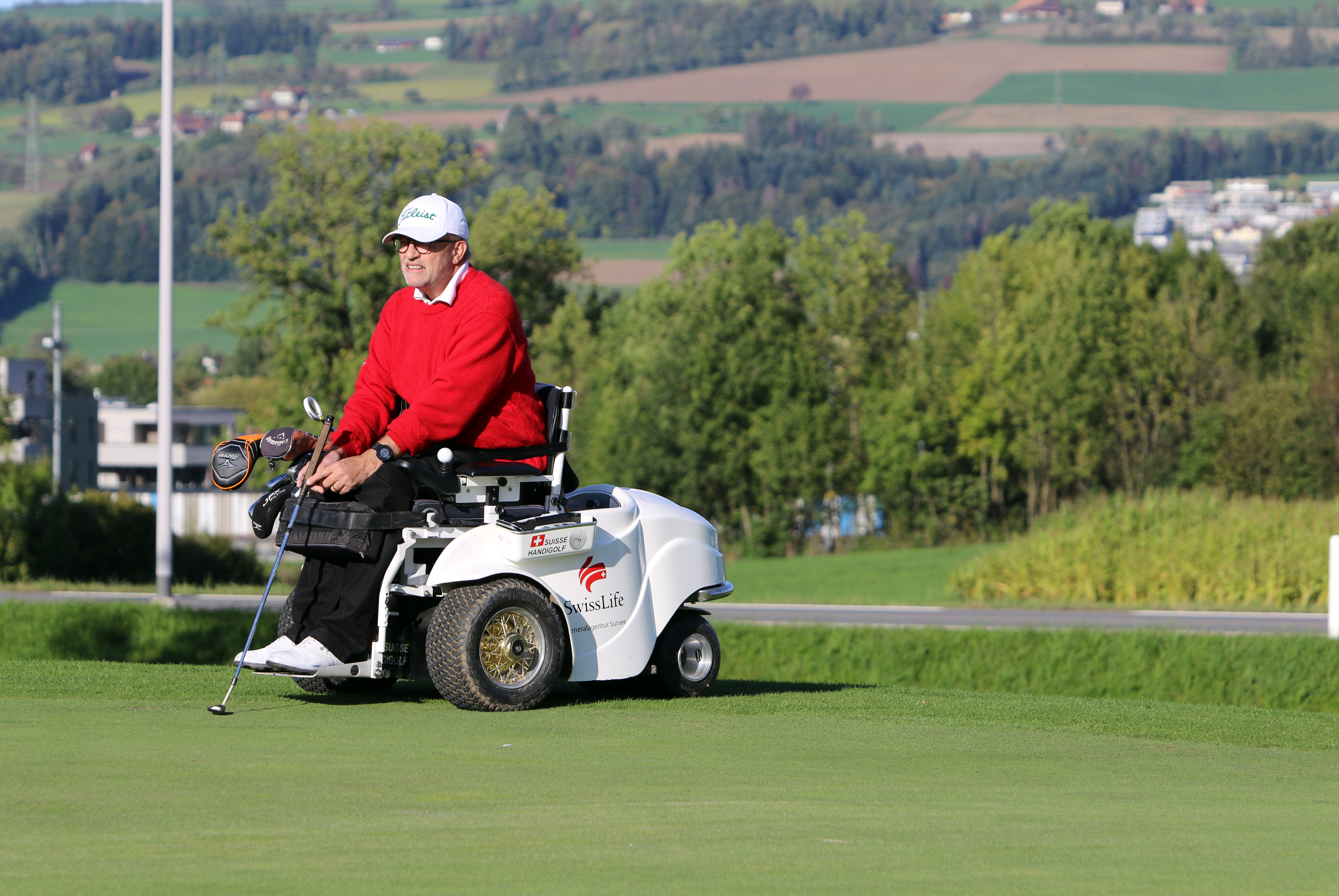 Les personnes en fauteuil roulant peuvent elles aussi pratiquer le golf grâce à des voiturettes spéciales, qui soutiennent les joueurs et joueuses en position debout. Cela demande de la concentration et de la coordination. Le golf est une preuve vivante de l'inclusion. Les personnes avec et sans handicap participent ensemble aux entraînements et aux compétitions. Le score net permet d'établir un classement commun des golfeurs et golfeuses aux conditions et aux handicaps différents dans un même tournoi. Concrètement, cela signifie que l'on déduit le handicap du joueur ou de la joueuse du score brut (nombre de coups). En Suisse, l'accès sans obstacles aux terrains de golf est pratiquement garanti partout. L'intégration du golf dans le programme sportif paralympique est ardemment souhaitée.