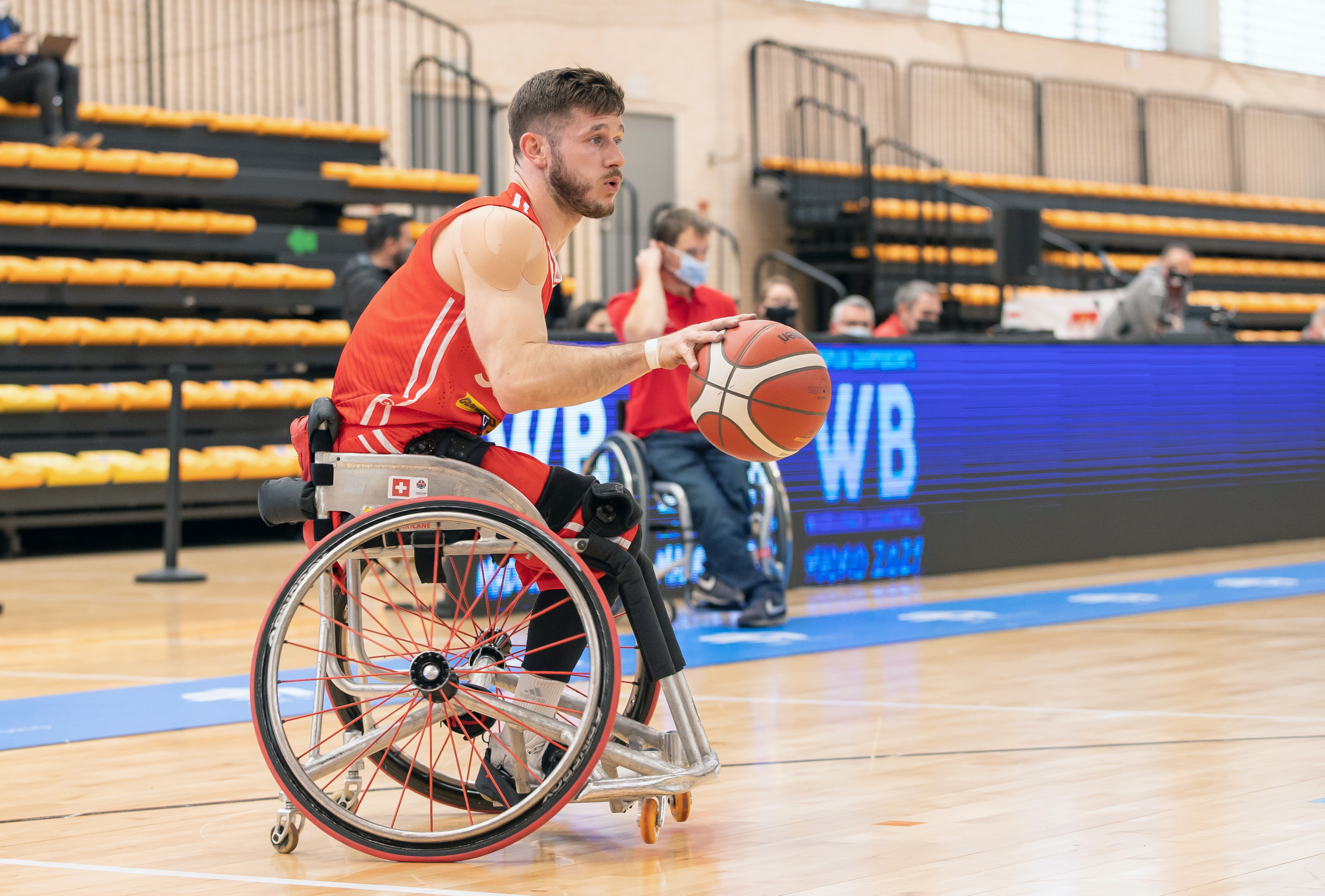Ce jeu, qui repose sur les mouvements rapides des personnes en fauteuil roulant, est très proche du basket-ball pour piéton·ne·s. Le match se joue en quatre fois dix minutes. Le périmètre du terrain, la hauteur du panier et les règles sont presque identiques. La grande différence réside dans le fait que les joueurs et joueuses doivent maîtriser deux équipements sportifs: le fauteuil roulant et le ballon de basket. Il est interdit de rentrer dans le fauteuil roulant de l'adversaire. Tout le monde peut participer: les paraplégiques, les personnes amputées et les piéton·ne·s. En Suisse, il existe une dizaine d'équipes qui s'entraînent régulièrement et participent au championnat. Depuis 1960, le basket-ball en fauteuil roulant est une discipline paralympique.
